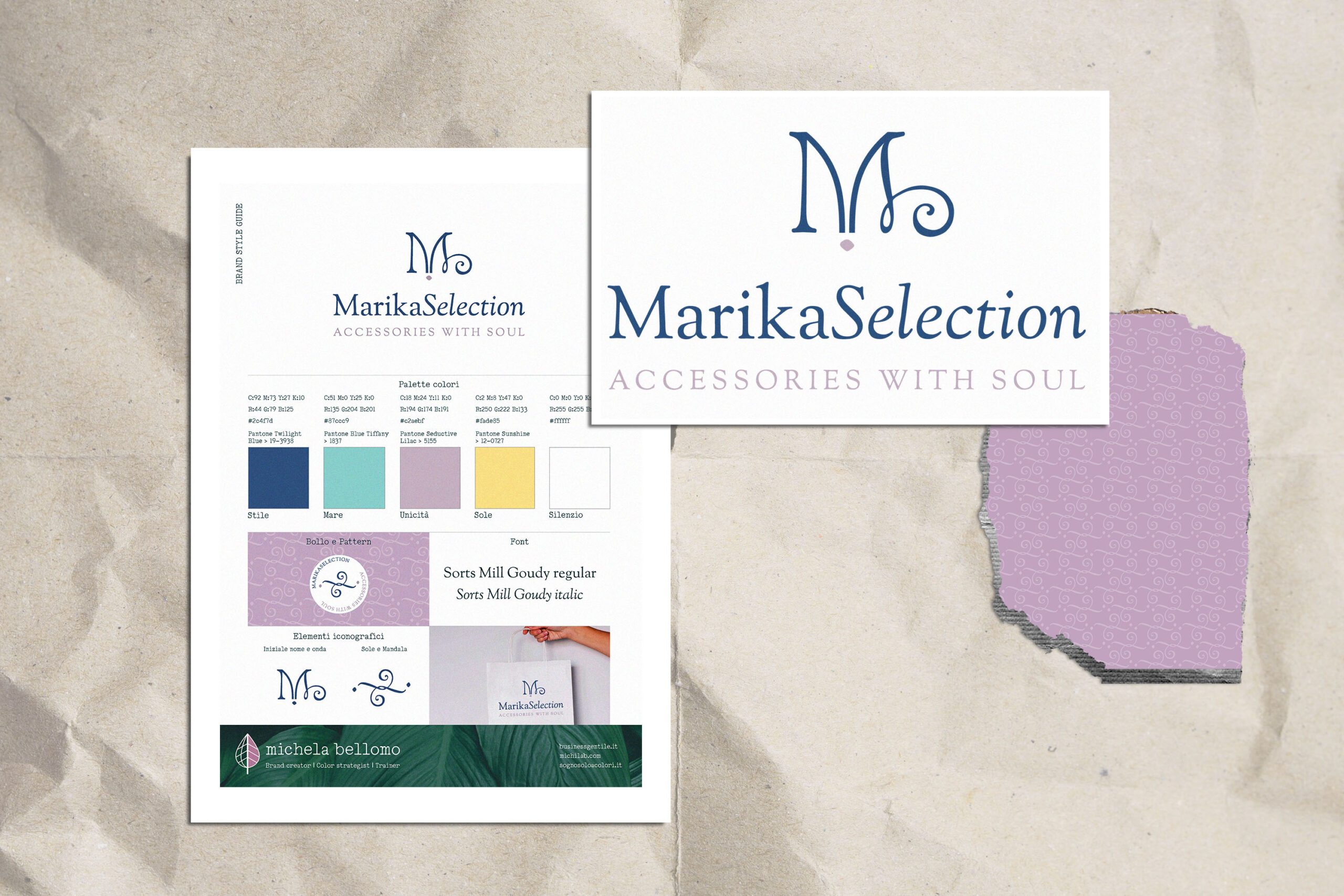 Grazie alla sua passione per le cose belle, Marika ha dato vita anche a una nuova linea di accessori artigianali firmata con il suo nome e mi ha chiesto di disegnarne il logo e la brand identity.